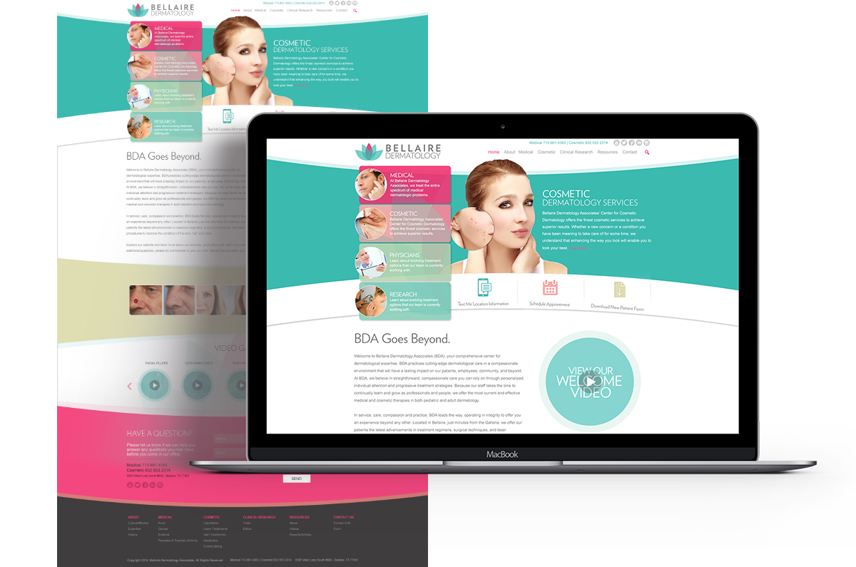 Bellaire Dermatology is a renown practice in central Houston, with a superior reputation, client base and service to match. Unfortunately, their brand did not. The project included full branding, web design, print collateral, signage, promo items and much more.